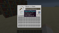 The grindstone is a tool that allows the player to combine two items of the same type in the input slots, forming a new item of the same type with the sum of the durabilities of the original items plus 5% up to.
